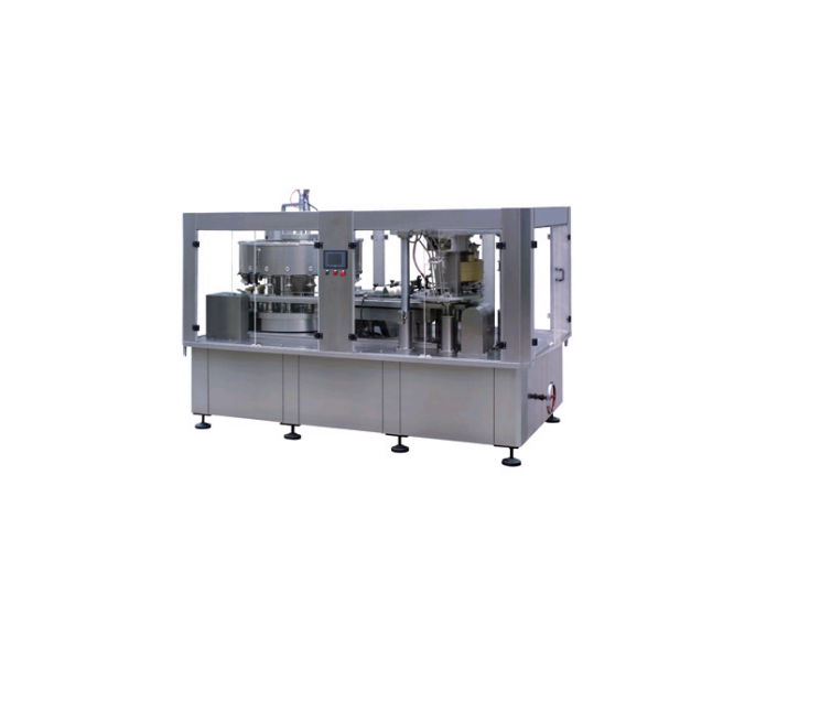 本組合機采用單室常壓定量灌裝閥灌裝,封口為二重卷邊旋壓成形,變頻調速控制,具有灌裝平穩、流量大、速度快、灌裝量準、無罐不灌裝、不滴漏、料缸液位深度自動控制、料缸可自動清洗消毒,生產速度連續可調的特點,適用于各種型號的易拉罐的灌裝和封口。